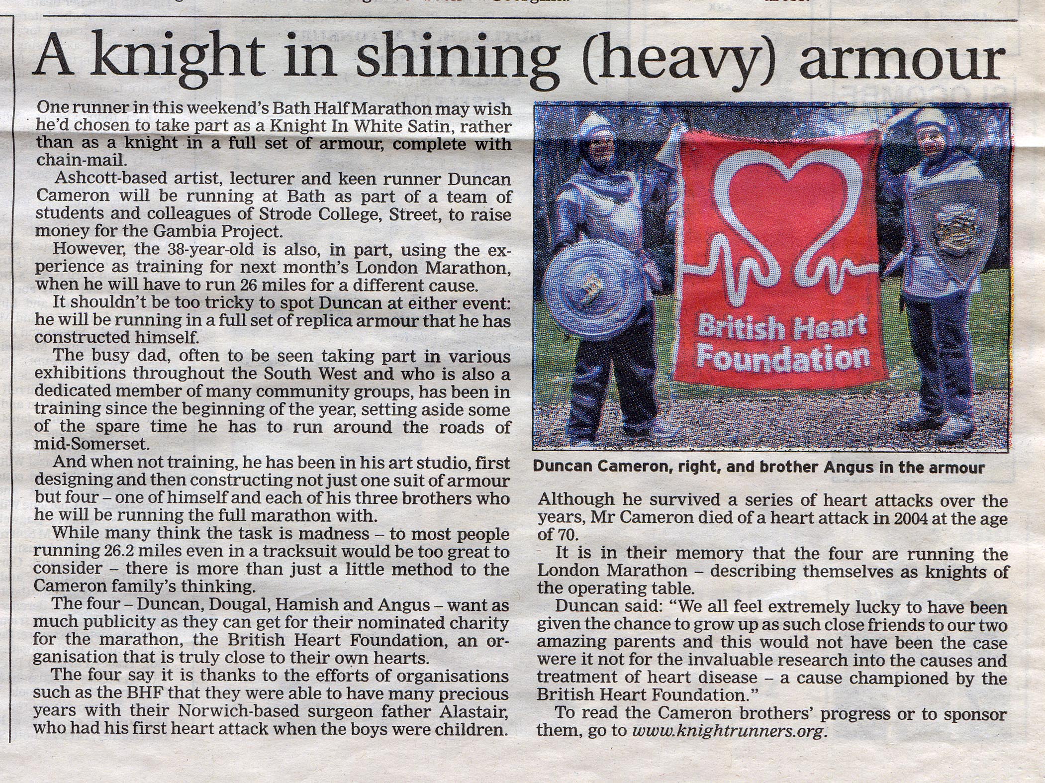 Sons to run as knights in armour in memory of surgeon dad